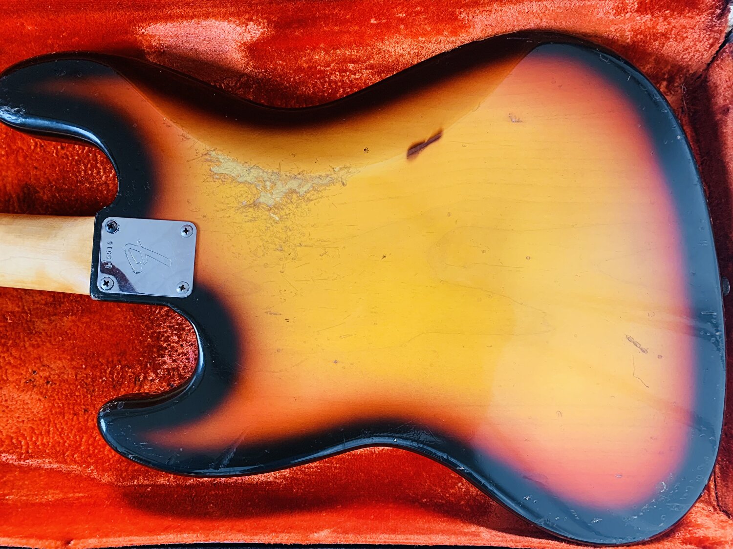Zeer fraaie Sunburst body, gecombineerd met een pikzwarte Rosewood hals. Dé classic combi voor de liefhebber. Deze bas heeft lollipop tuners als een van de eerste uit deze jaren.